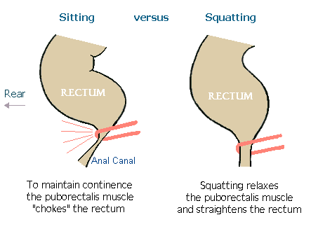 - Helps regulate digestion. The full deep squat (explained later) helps you poop clean and easy as the thighs compress the lower abdomen (right thigh presses on the cecum and the left compresses the descending colon) and the rectum straightens and relaxes. So, excellent for those suffering from hernias, diverticulosis, pelvic organ prolapse, hemorrhoids and of course excellent in helping pregnant women prepare for a natural birth.
