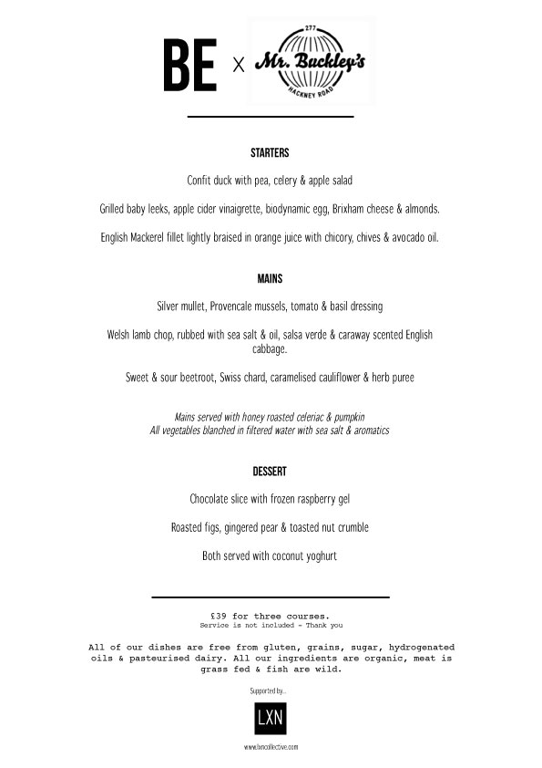 Be at Buckley’s is back by popular demand! Find the fabulous new menu below for the next Tasha/Be and Mr. Buckley’s collaborative night!